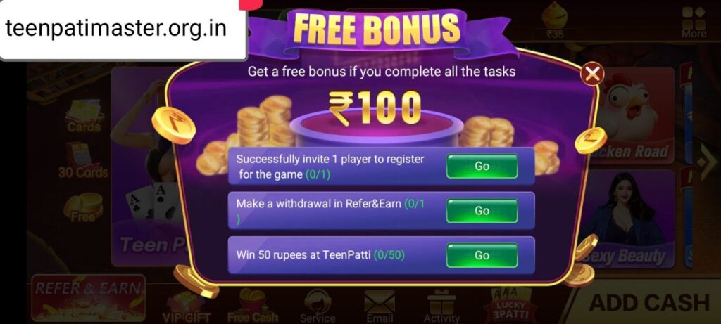3. TeenPatti માં ₹50 જીતો (Win 50 rupees at TeenPatti Master): તમારે આ એપની અંદર ‘તીન પત્તી માસ્ટર‘ ગેમ રમીને કુલ ₹50 જીતવા પડશે.